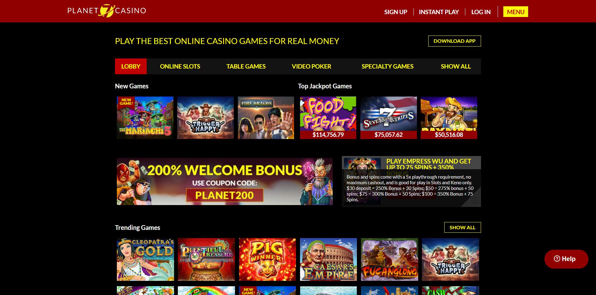 Primeiro de tudo, um bônus para usar a versão móvel está disponível, mas voltaremos a ela mais tarde. Depois de se inscrever, você poderá usar todas as promoções de código de bônus. Mais do que isso, com seu primeiro depósito, você tem a chance de receber até 200% de reembolso. O que faz o Planet 7 Casino Portugal se destacar entre seus concorrentes, no entanto, é que novos códigos de bônus, rotações gratuitas e outros tipos de bônus ficam disponíveis a cada semana, o que significa que você pode experimentar todos os benefícios de um cassino on -line.