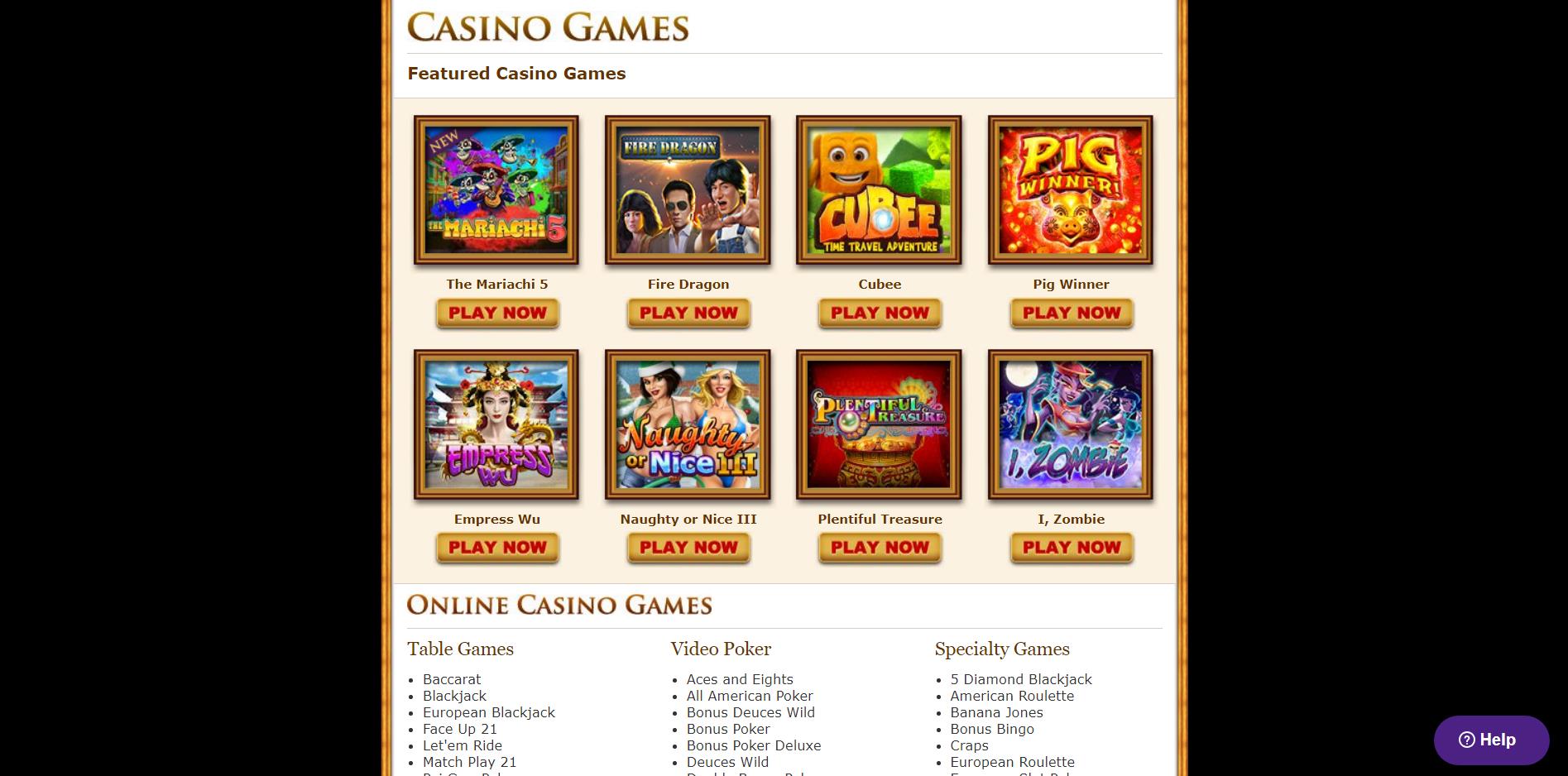 Entre os títulos, também existem alguns jackpots progressistas, como o Jackpot Pinatas, o milhão de Aztec, o Megasaur e o Jackpot Cleopatra's Gold, para aqueles que desejam quebrar o banco. A seleção de jogos também inclui jogos de mesa, com muitas variações de versões clássicas de Blackjack online de graça, bacará, pôquer, roleta, mas também craps, keno e cartas de arranhões.